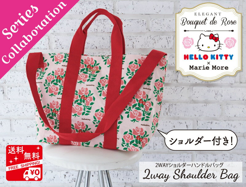 ハローキティ 日本製 2way ショルダーバッグ キティちゃん 大人 かわいい 大きめ 肩掛け marie more メアリーモア 薔薇柄 大容量 エコバッグ バラ柄 花柄 オシャレ A4が入る大きさ 小旅行に サンリオ【メール便 送料無料 あす楽対応】
