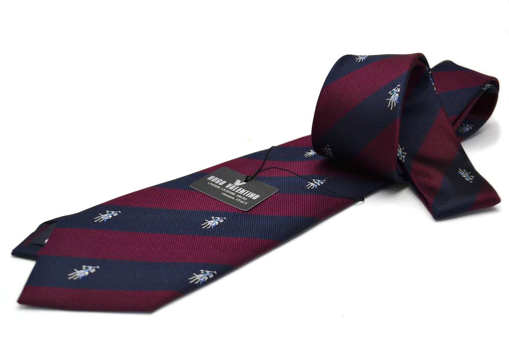 【10】ネクタイ HUGO VALENTINO/ネクタイ/ジャガード/TYPE-C-25/ダークネイビー/ボルド/エンブレム/ストライプ柄